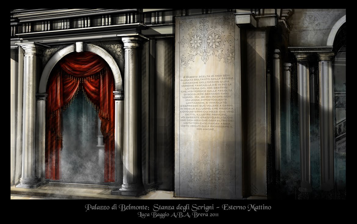 Such persons are a series of sketches film depicting the Palace of Belmonte , the first realized only as "fast draft" with a little sign 'quick and dirty while the other sketches see a color in Photoshop to make the lights and atmosphere of the place.